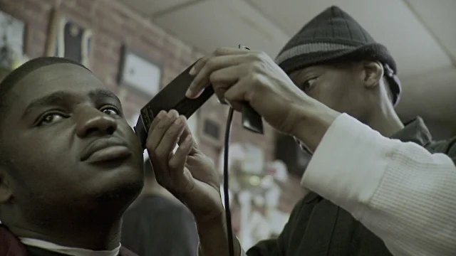 Assassin feature kicks in - we cut to a shot of people watching the video in the barbershop, can also include the shot of assassin on the TV, then cut to a shot of some younger people watching it on their phones in the street.
